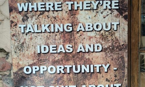 “Sit at the Tables Tin Sign” (length 55 cm, height 83 cm) R495