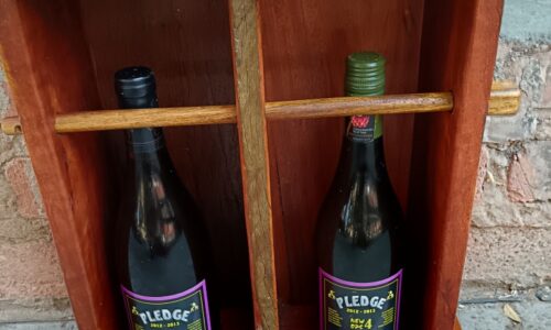 Sleeper Wood Wine Holder – with 2 full bottles of wine (length 34,5 cm, width 16 cm, height 51 cm) R495