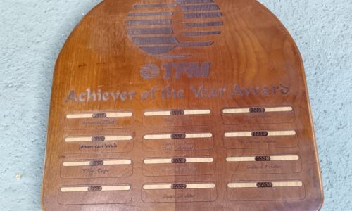 TFM Achiever of the Year Award Plaque (length 45 cm, height 45 cm) R125