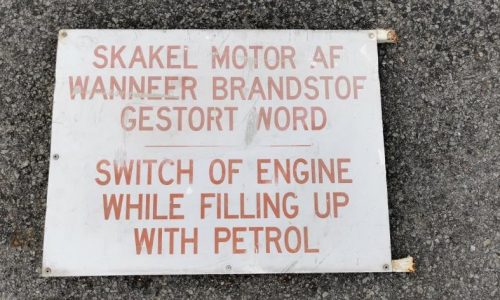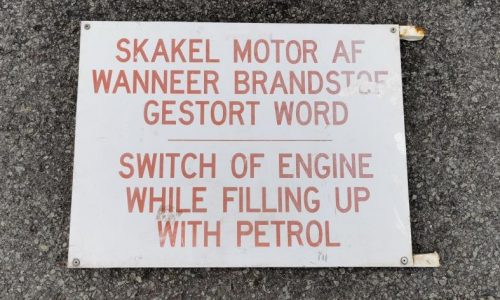 English/Afrikaans “Switch of the Engine while filling up with petrol Sign” (length 60 cm, height 45 cm) R495
