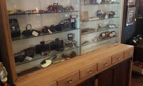 Farm House Display Cabinet – 6 shelves & 4 doors with sliding glass (length 185 cm, width 45 cm, height 204 cm) NB: Ornaments are not included in the price R4995
