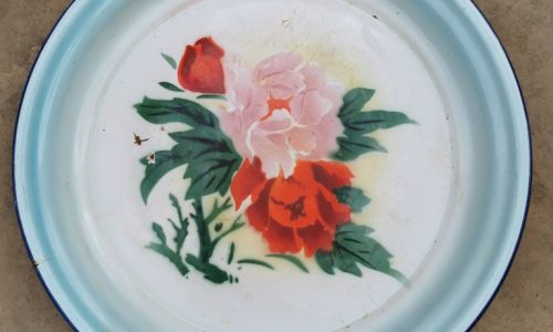 Vintage Enamel Tray with Flowers (diameter 35.5 cm) R195