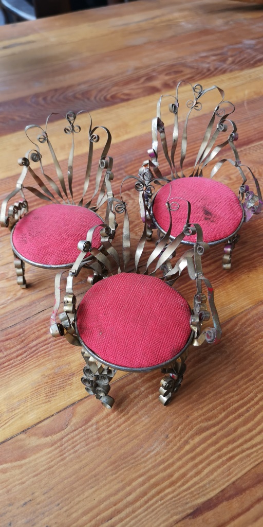 Miniature Tin Chairs x 3 (height to seat 4 cm)