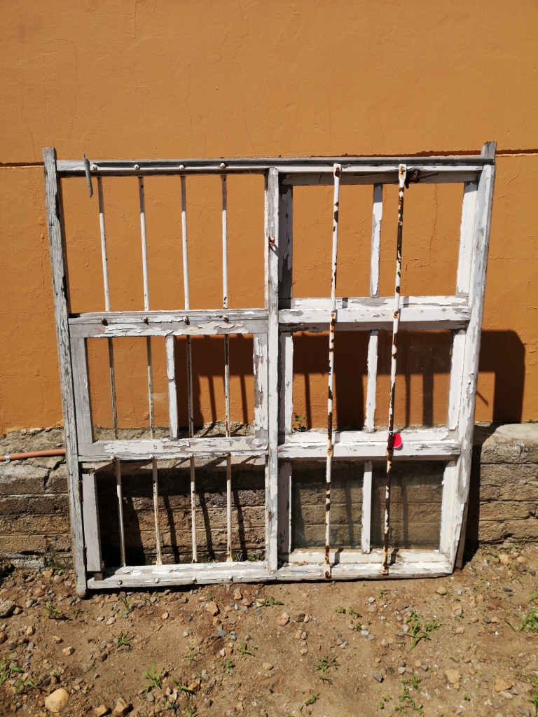 Painted Window Frame – with Bars (height 162.5 cm, width 152.5 cm, thickness 9.5 cm) ideal for displays