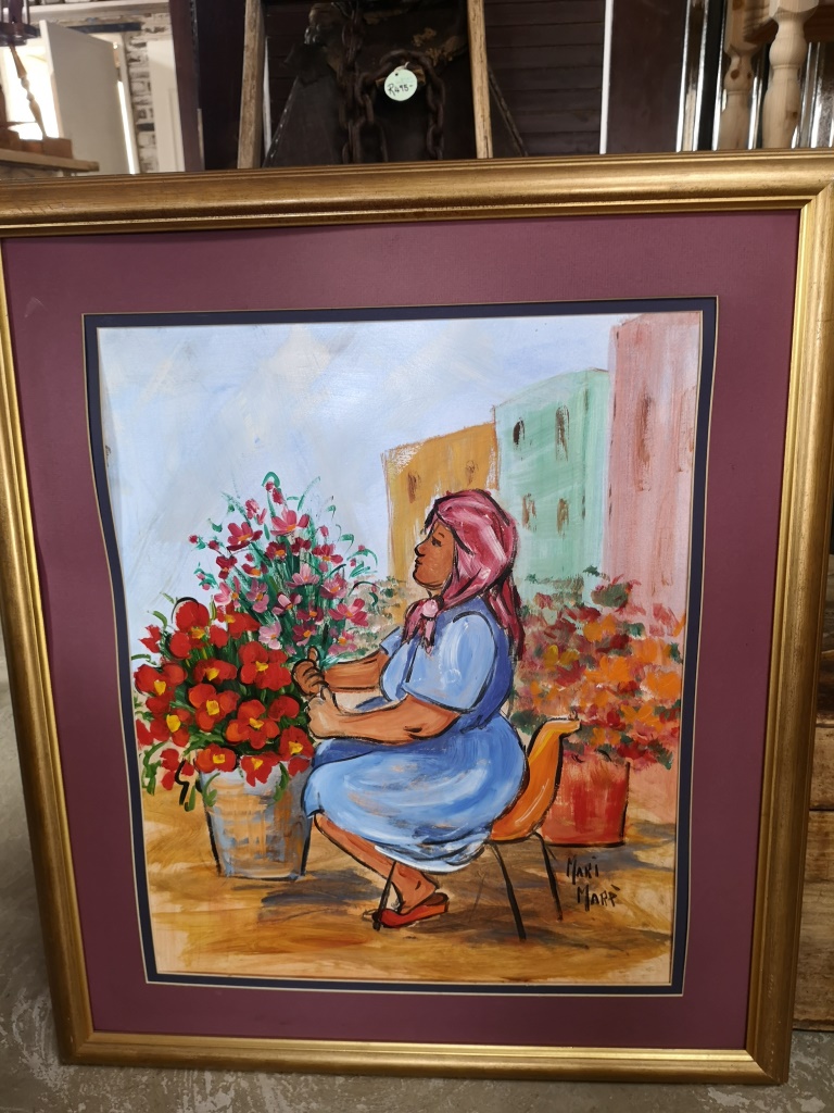 Print of Lady with Flowers by Mari Mare (length 85 cm, width 73.2 cm)