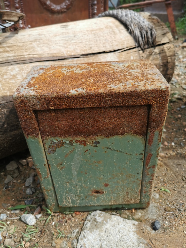 Rusted Green Safe – NO KEY (Length 30 cm, width 13 cm, height 23 cm)