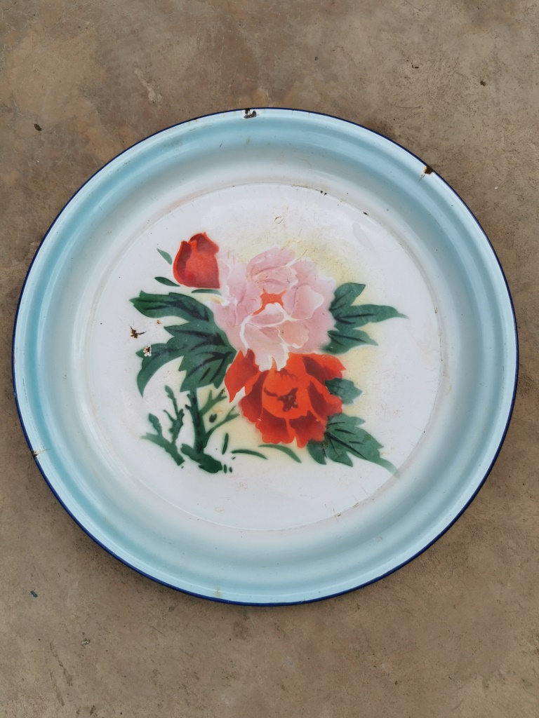 Vintage Enamel Tray with Flowers (diameter 35.5 cm)