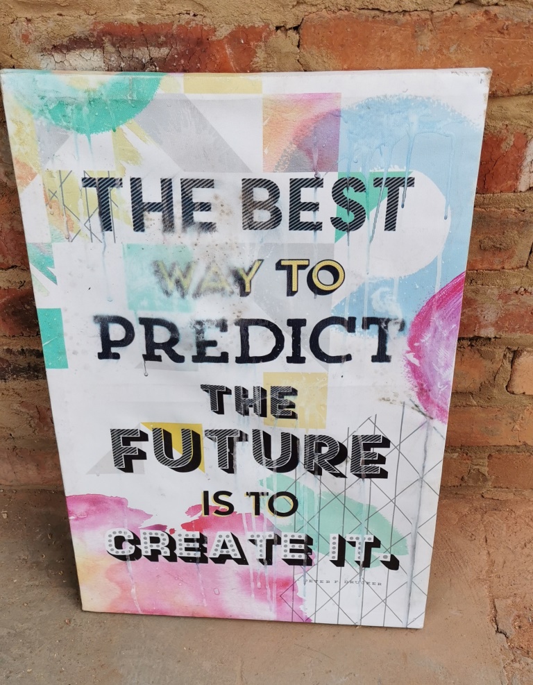 Block Mount “The best way to predict the future is to create it” length 59.5 cm, width 40 cm)