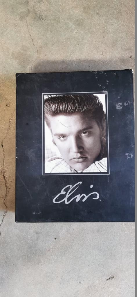 “Elvis Collection” in a BOX comprising of: photos, birth certificate, school report, various slips, 2 x DVDs etc