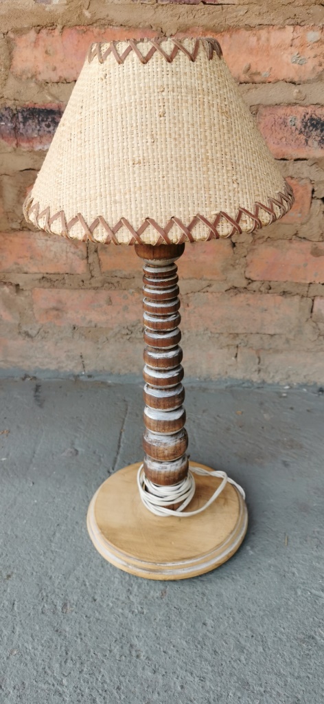 Wooden Turned Lamp + shade (height 54.5 cm)
