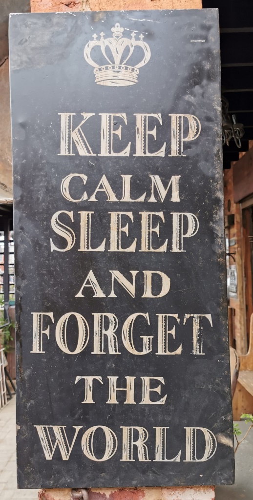Metal “Keep Calm Sleep and Forget The World Sign” (length 41.5 cm, height 93 cm)