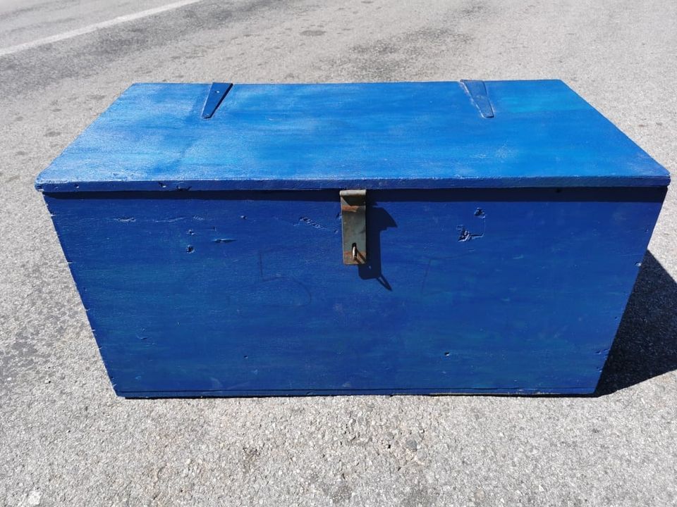 Vintage Trunk/Kist – painted blue (length 107 cm, width 54.5 cm, height 54.5 cm)