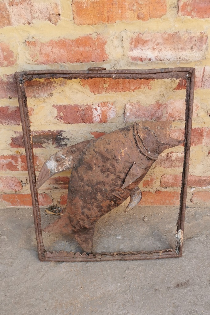 Metal Wall Fish Sign (length 46.5 cm, height 57.5 cm) rusted