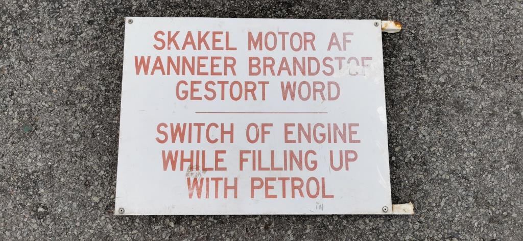 English/Afrikaans “Switch of the Engine while filling up with petrol Sign” (length 60 cm, height 45 cm)