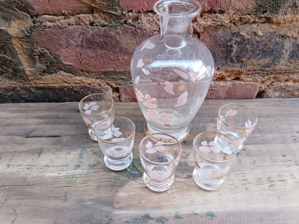 Vintage Decanter & 5 Glasses (height of Decanter 16.5 cm)