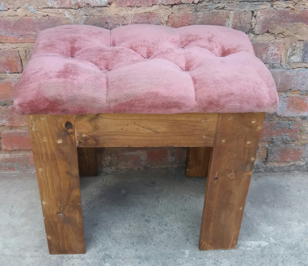 Wooden Padded Stool (length 51.5 cm, width 34.5 cm, height 50.5 cm)