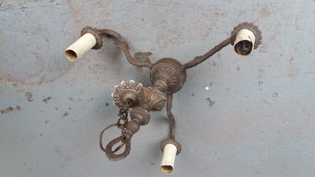 Vintage Brass Hanging Light – takes 3 globes J 12333