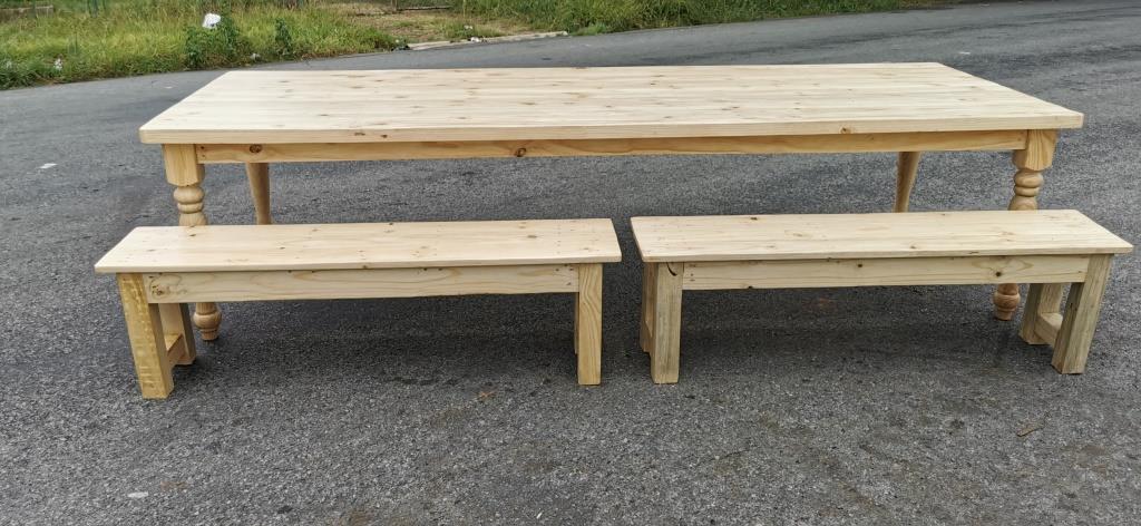 Farm House Dining Room Table – with turned legs + 2 x Benches (Table length 300 cm, Bench length 150 cm)