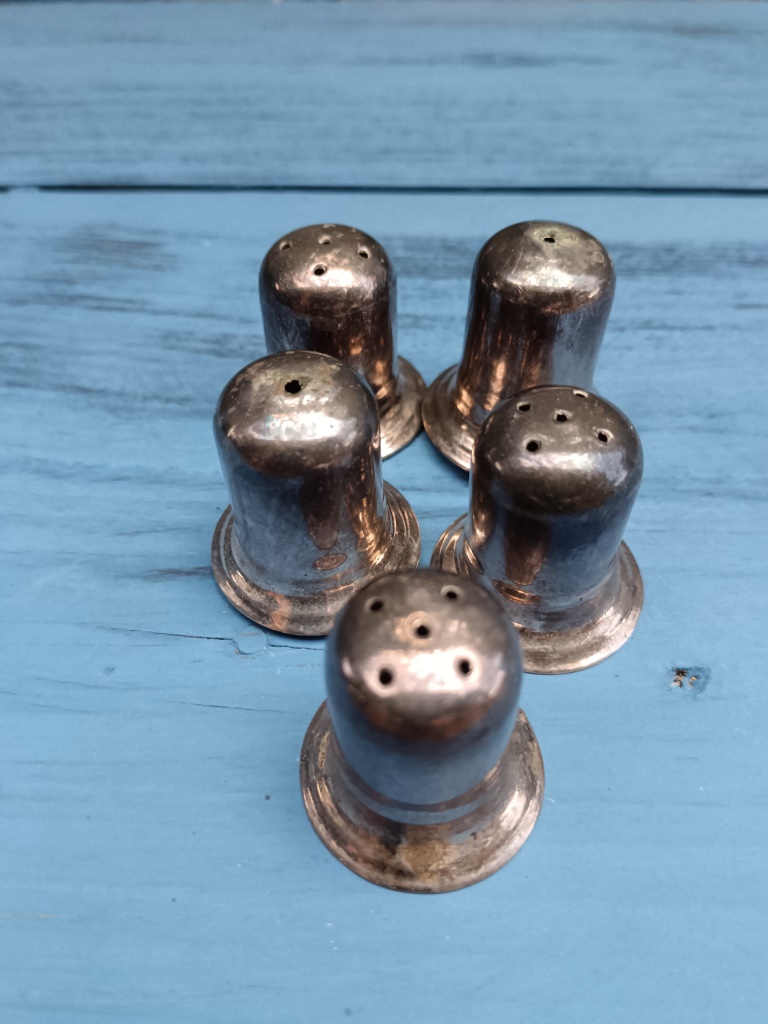 Silver Plated Salt & Pepper Shakers x 5 (height 3 cm)