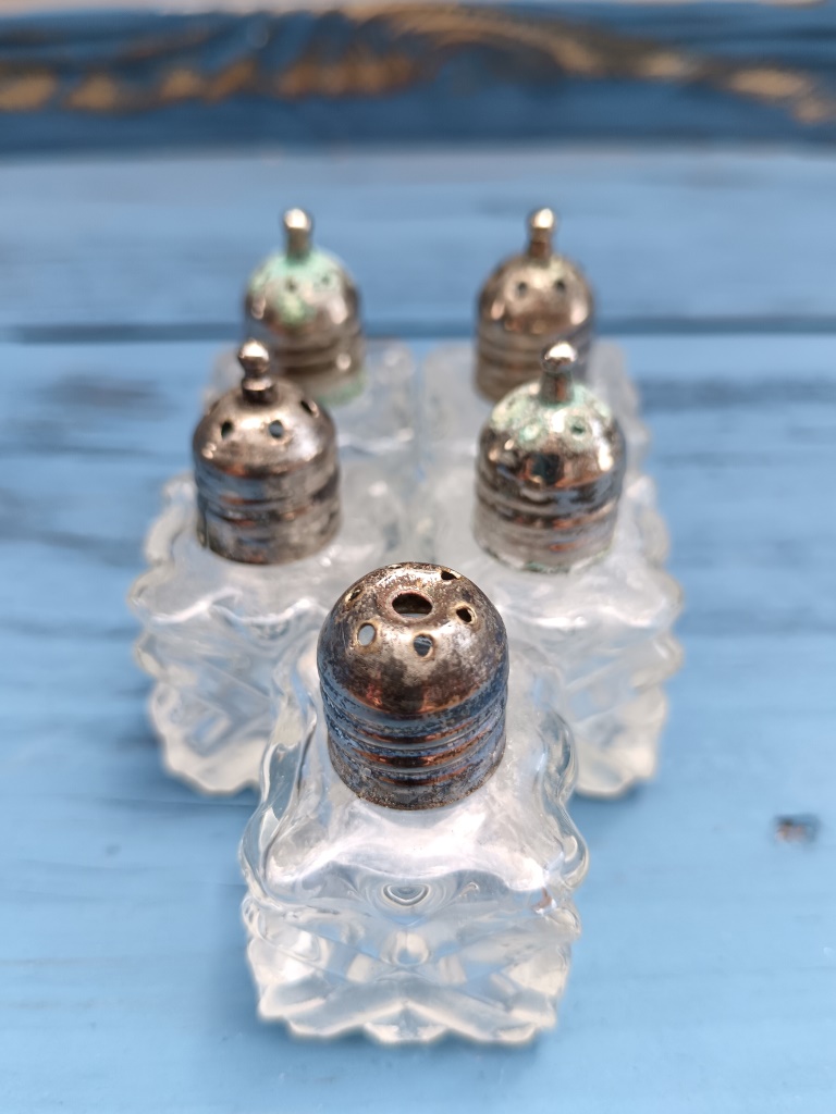 Vintage Glass Salt & Pepper Shakers x 5 (height 4.5 cm)