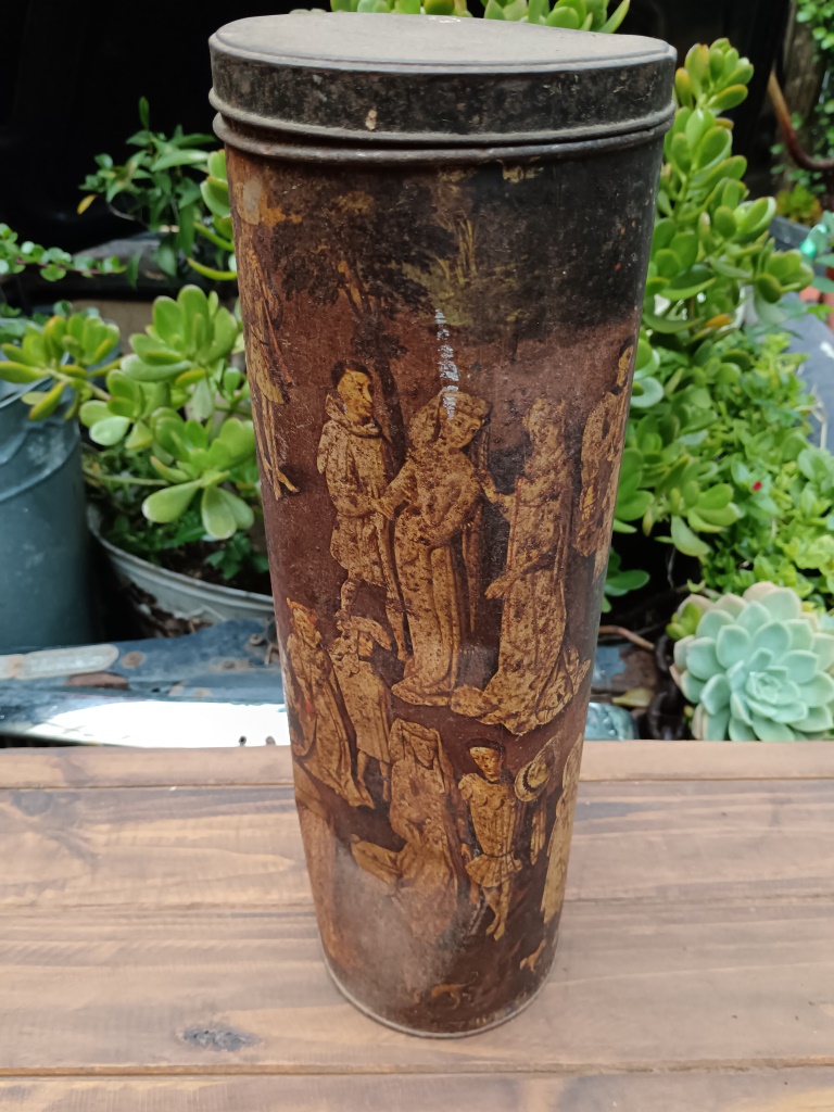 Vintage Tin Grand Mousseux Champagne Tin Holder (height 41 cm) with lovely patina