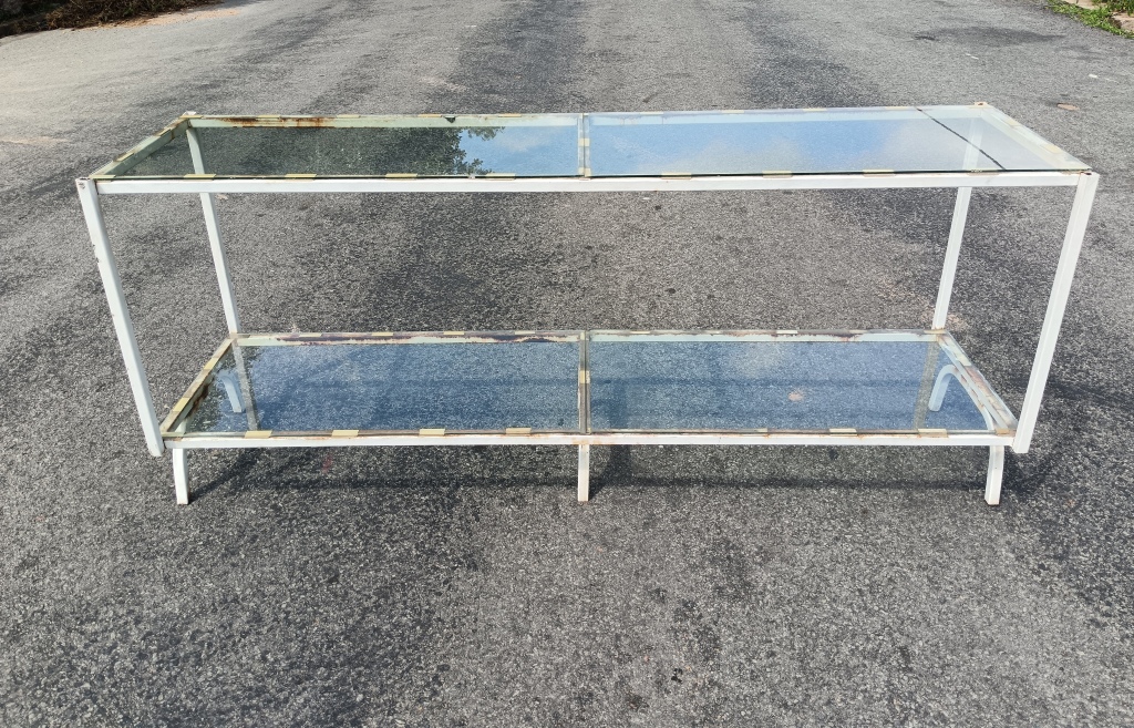 Metal & Glass Display Cabinet – 1 shelf (length 200 cm, width 55,5 cm, height 85,5 cm)