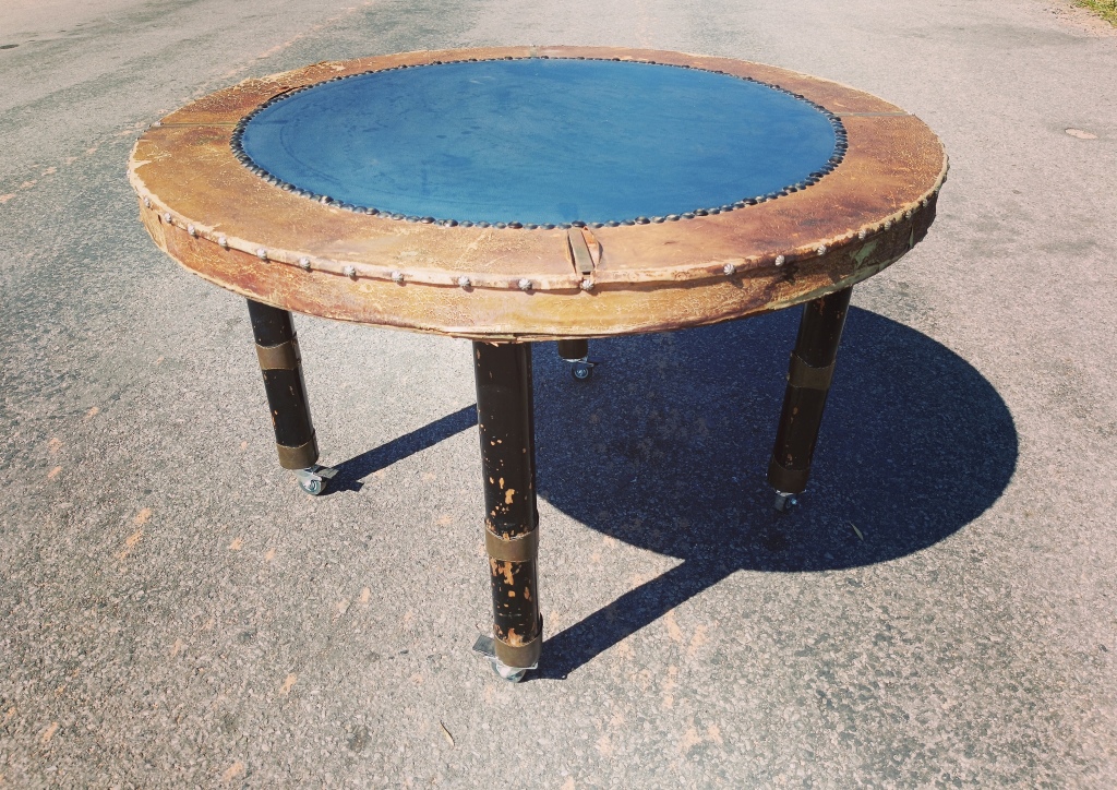 Vintage Card Table – on castors (diameter 108 cm, height 69 cm) with loads of patina