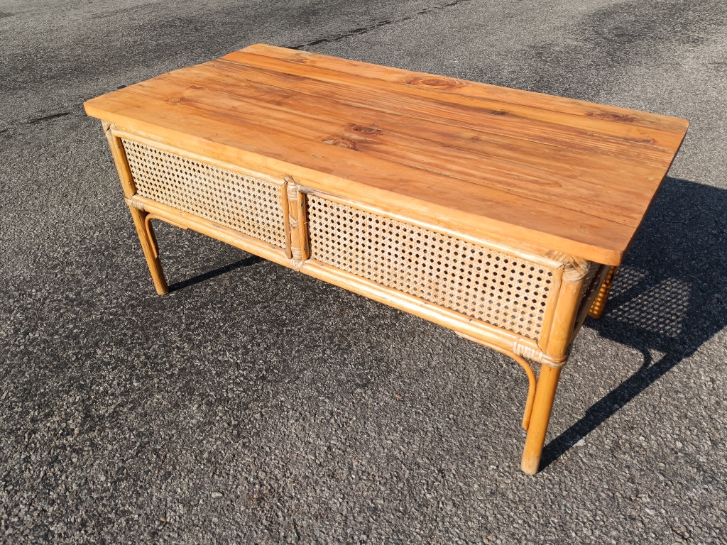 Wicker Coffee Table – with wooden top (length 103 cm, width 54 cm, height 47 cm)